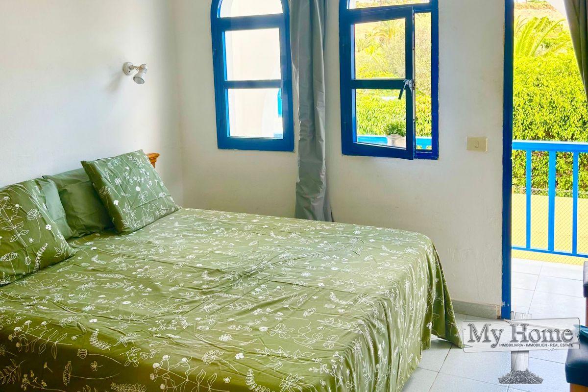Se alquila bungalow reformado en esquina en Maspalomas. La propiedad consta de un dormitorio, un baño, salón / comedor, cocina, jardín cerrado y balcón. Totalmente equipado, con lavadora, nevera, microondas, TV satélite y caja fuerte. situado en un complejo bien cuidado con piscina comunitaria. Gastos de agua y electricidad incluidos en el precio.