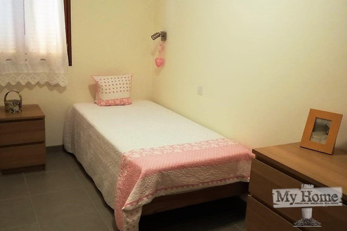 Bungalow met twee slaapkamers te huur in Playa del Inglés. De woning heeft twee verdiepingen met elk een badkamer. Op de eerste verdieping is er een woon-eetkamer die toegang geeft tot de volledig uitgeruste keuken, deze heeft ook een terras en een tuin. Op de bovenverdieping bevinden zich de twee slaapkamers met elk twee éénpersoonsbedden. De hoofdslaapkamer heeft toegang tot een balkon met uitzicht op de gemeenschappelijke ruimtes van het complex. Deze woning is gelegen nabij de commerciële en recreatiegebieden, een grote verscheidenheid aan restaurants en supermarkten en een paar meter van het strand van Playa del Inglés.