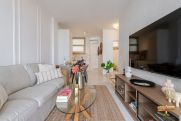 Het appartement is ruim en licht met vrijwel de hele dag zon. Het is volledig gerenoveerd en wordt volledig gemeubileerd en instapklaar verkocht, in uitstekende staat. Het bestaat uit een grote woonkamer met een Amerikaanse keuken, twee grote slaapkamers aan de buitenkant, elk met ramen en zonlicht, een grote comfortabele badkamer en een zonnig terrasbalkon.