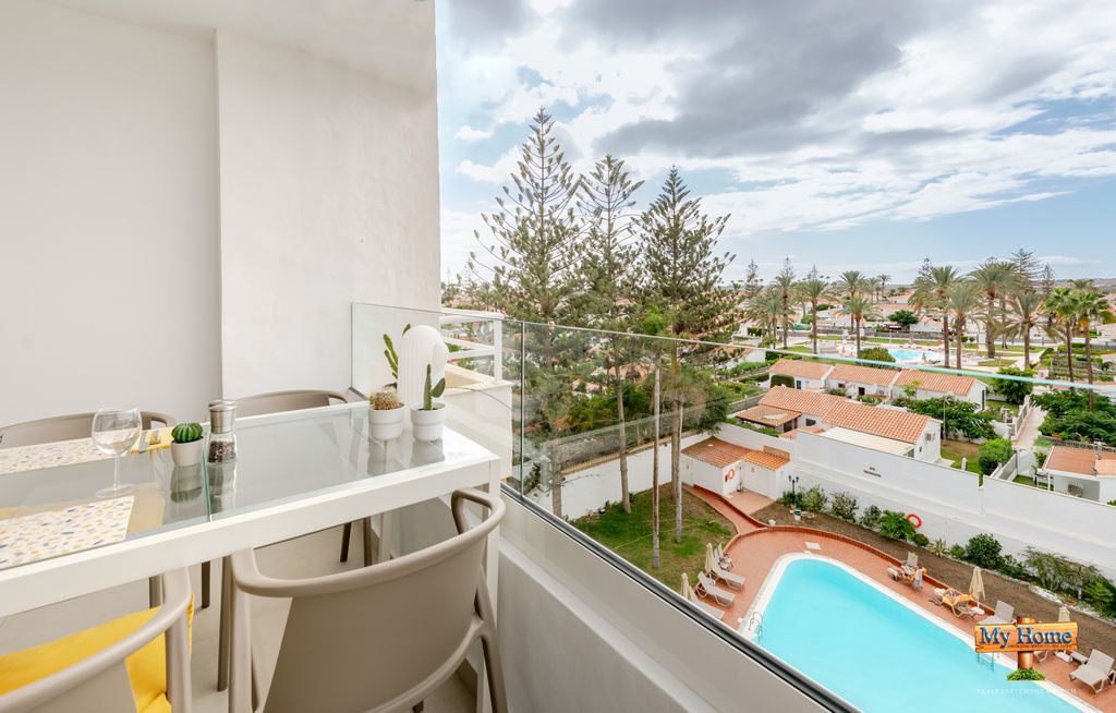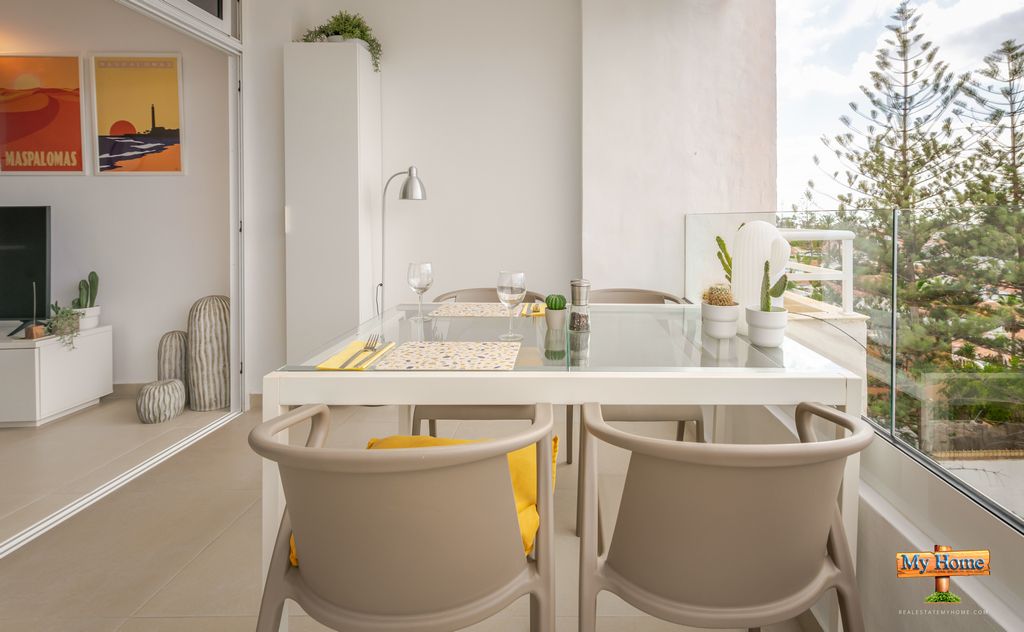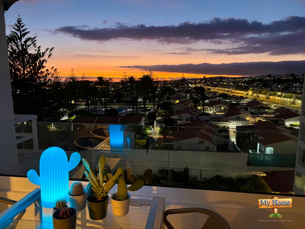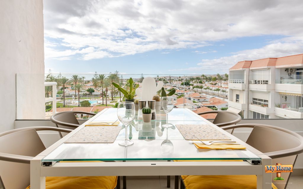 Spektakulær leilighet i øverste etasje til salgs i et av de mest ettertraktede kompleksene på Avenida de Tirajana, midt i sentrum av Playa del Inglés. Fantastisk utsikt over Maspalomas-landskapet. Kompleks med en privilegert beliggenhet, oppvarmet basseng, 24-timers resepsjon og privat parkeringsanlegg.